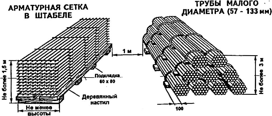 • штабель связок и пакетов не более 2 м, между рядами устанавливают деревянные или металлические прокладки;